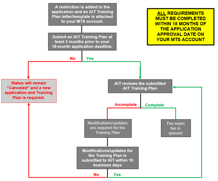 - You must provide an AIT Training Plan at least 3 months prior to your 18-month application deadline.
